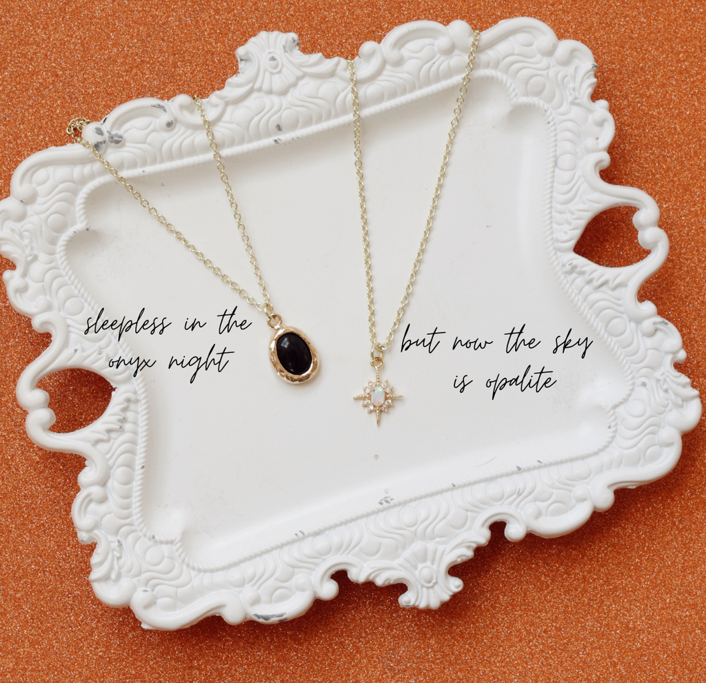 This necklace set is inspired by the iconic lyric, "love you to the moon and to Saturn."
