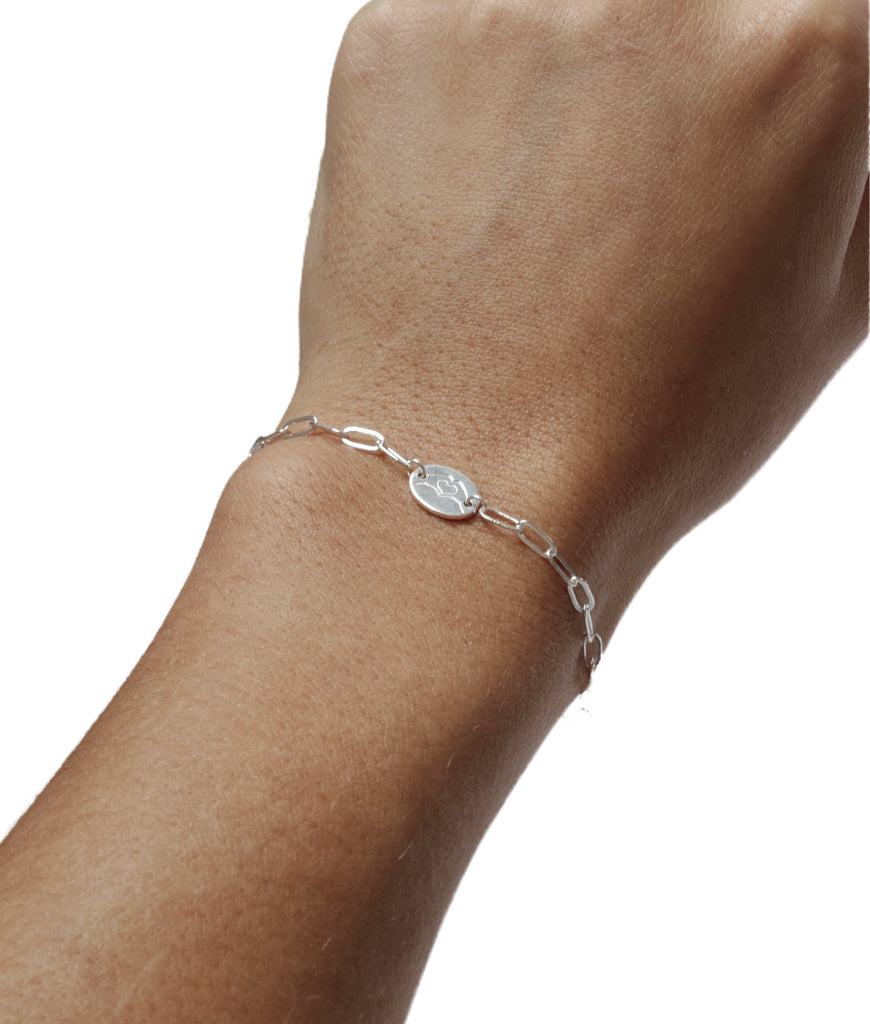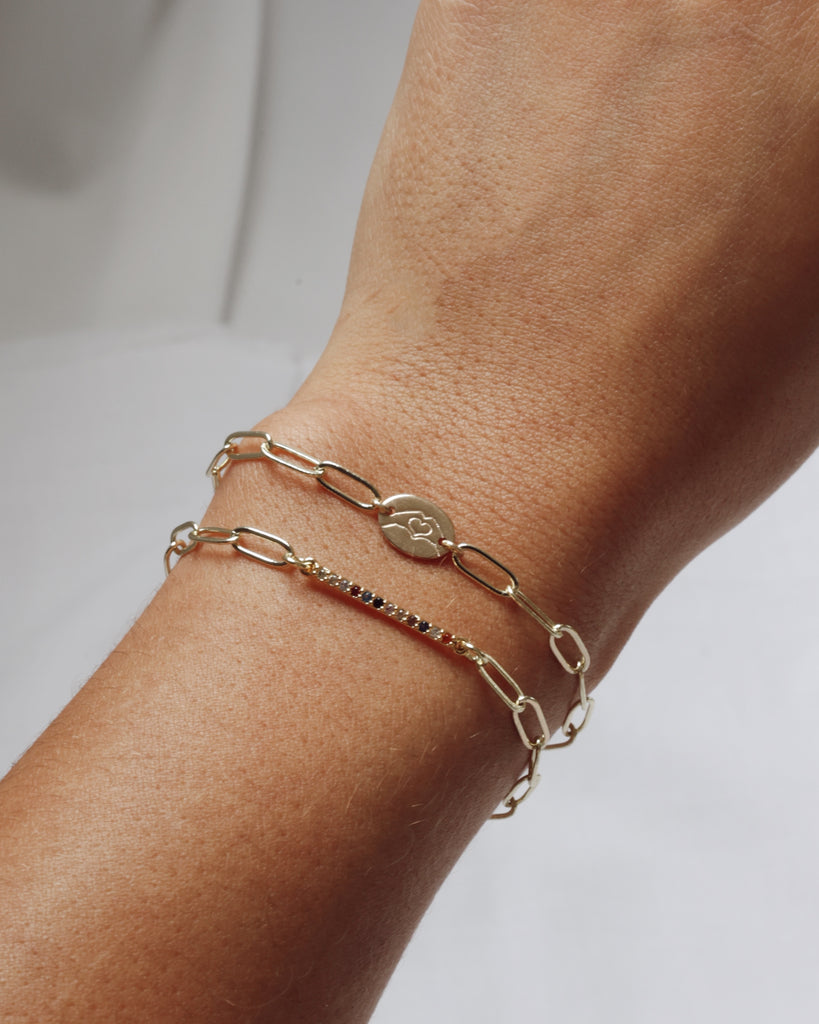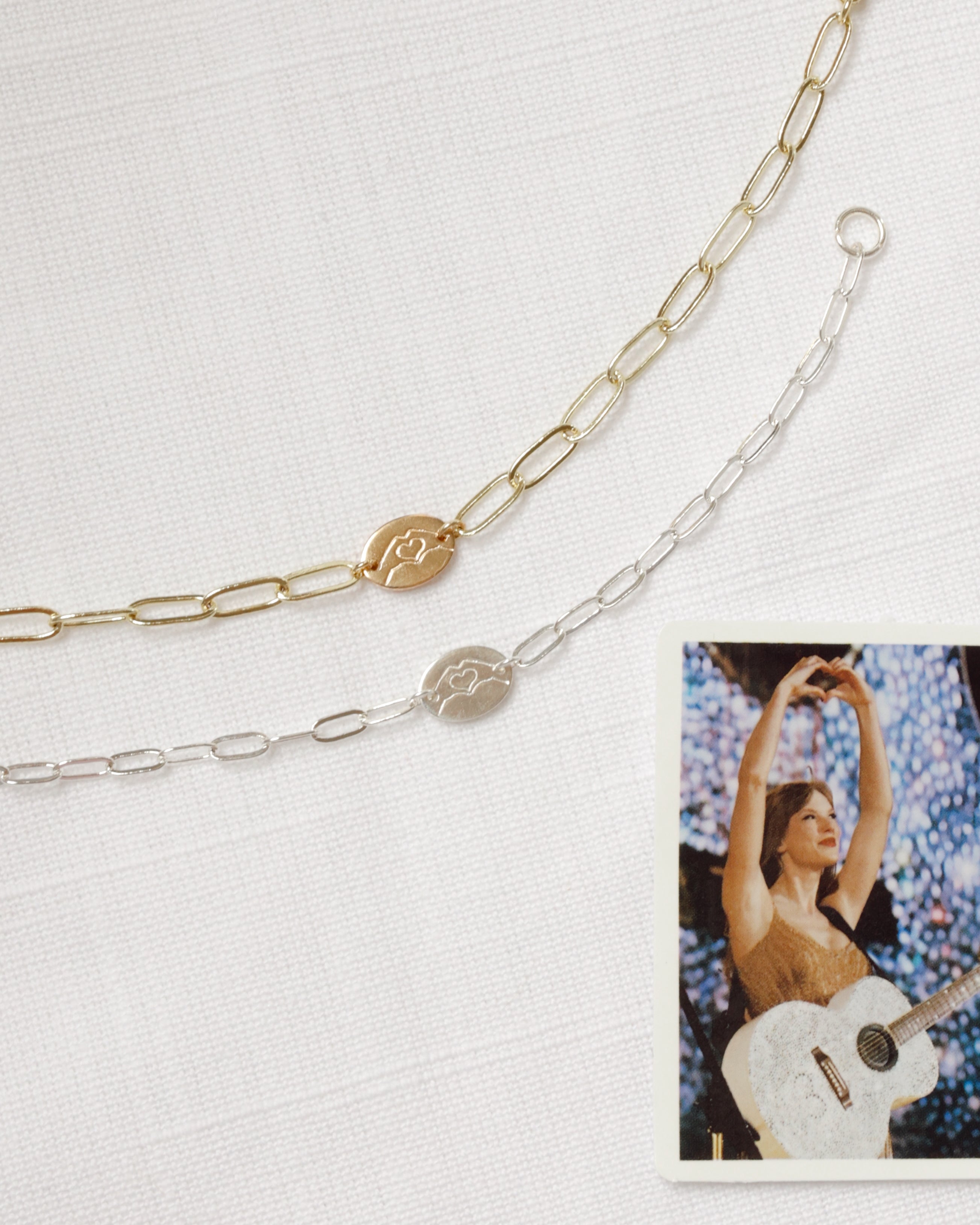- Handcrafted 14k gold plated or silver bracelet featuring the iconic fearless heart hands