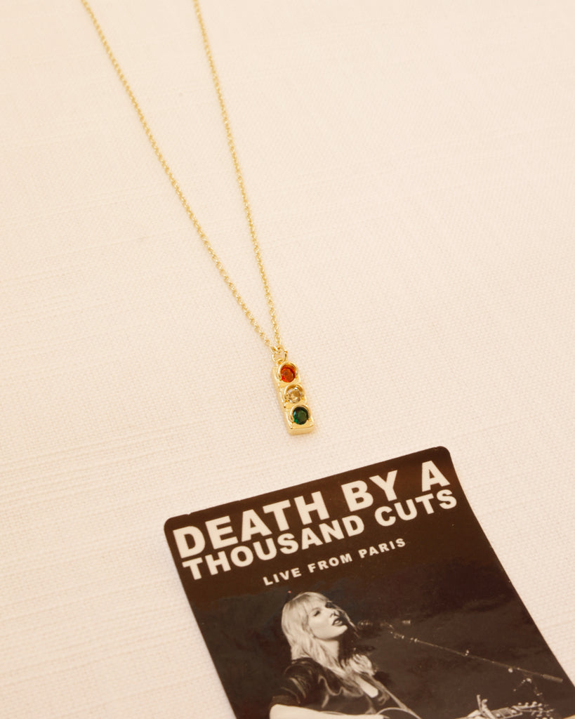 - This handcrafted 14k gold plated necklace is inspired by "death by a thousand cuts"