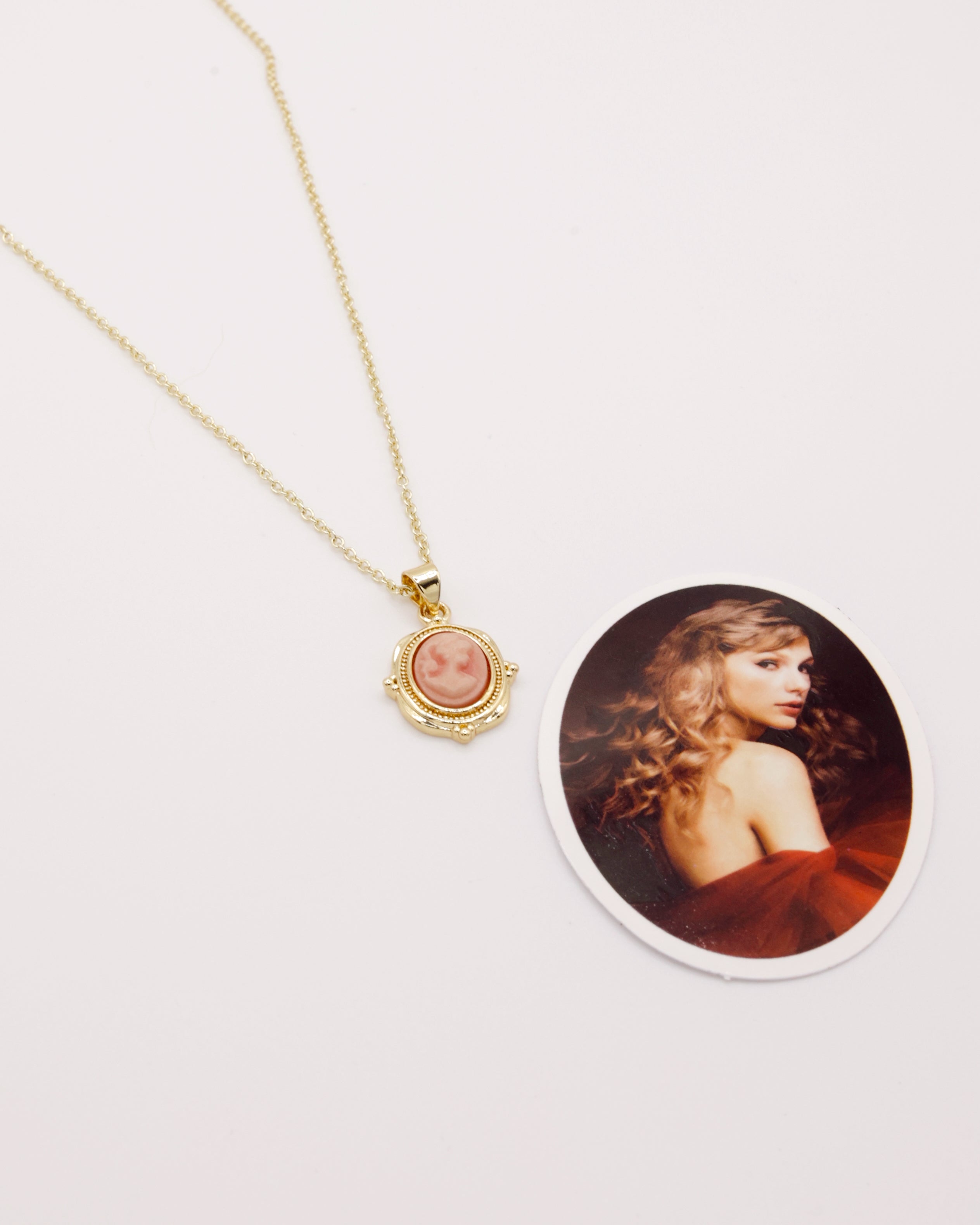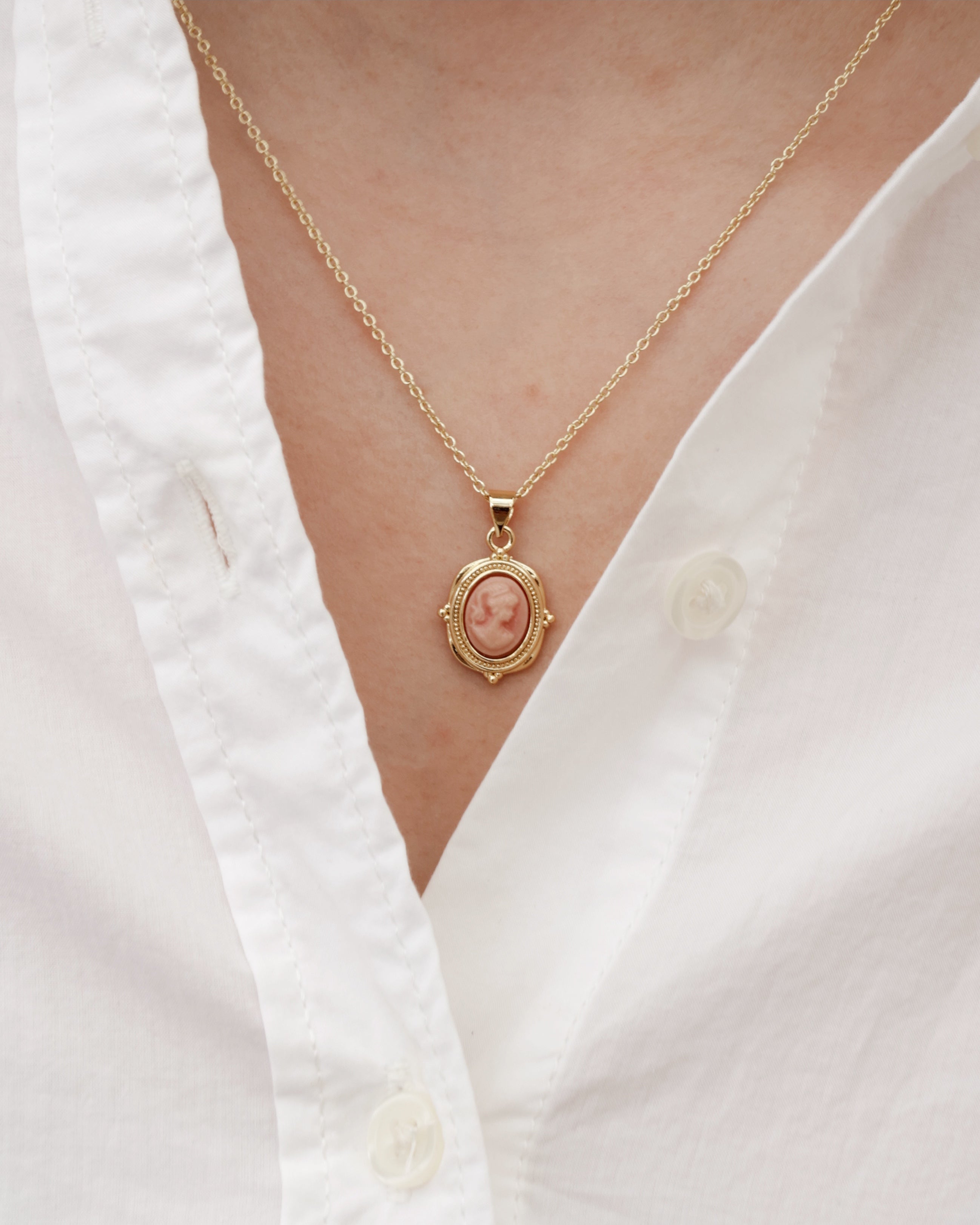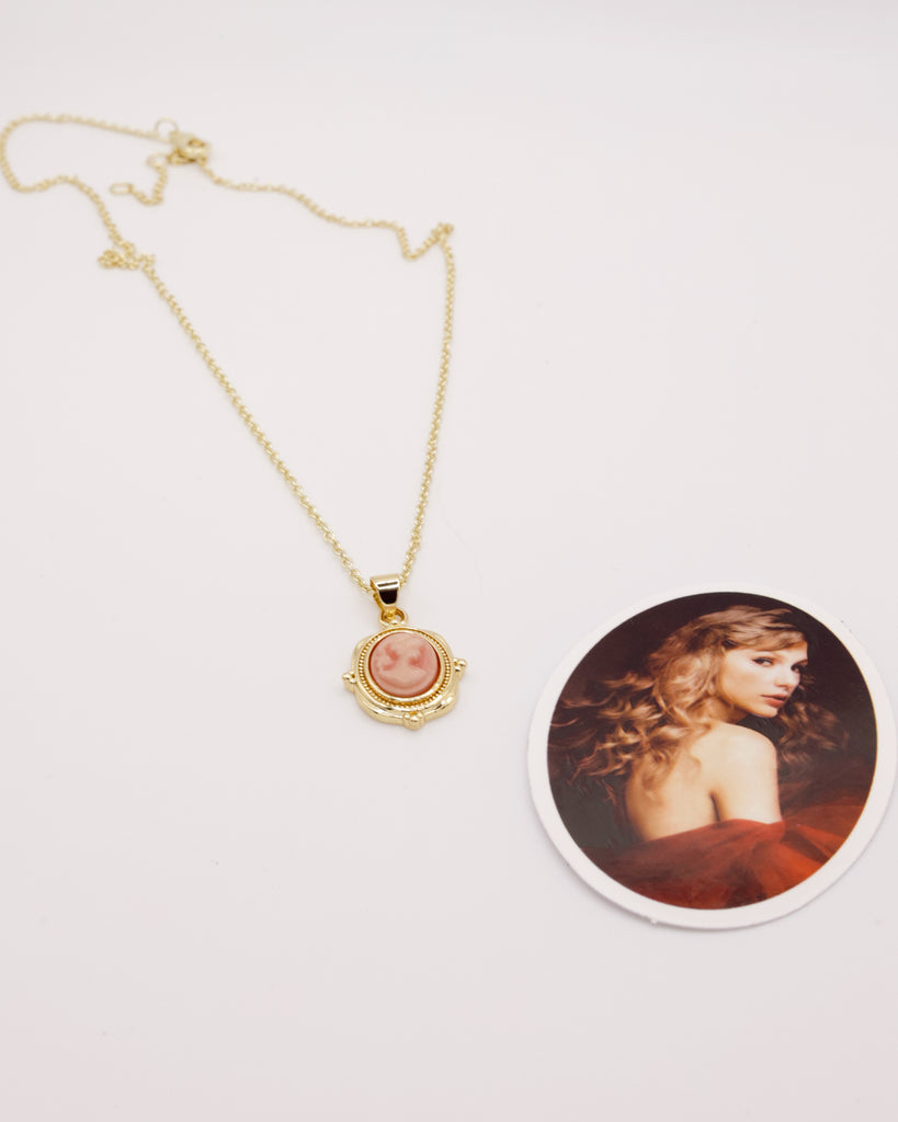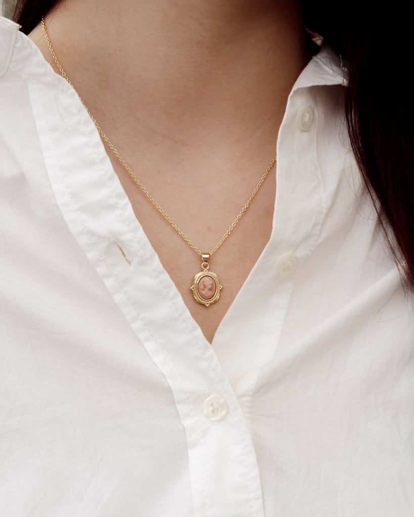 - Features a vintage inspired pink cameo charm
