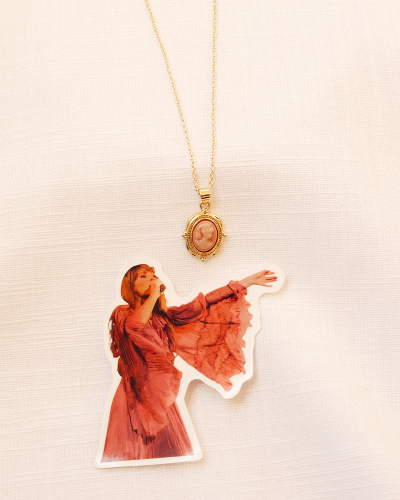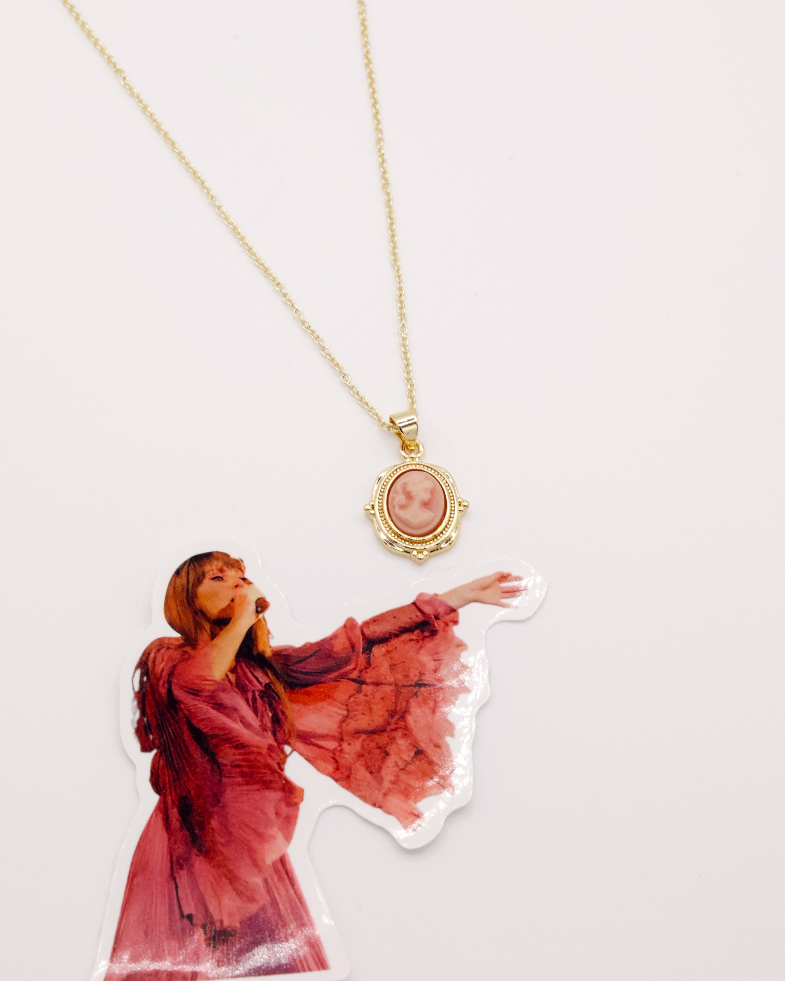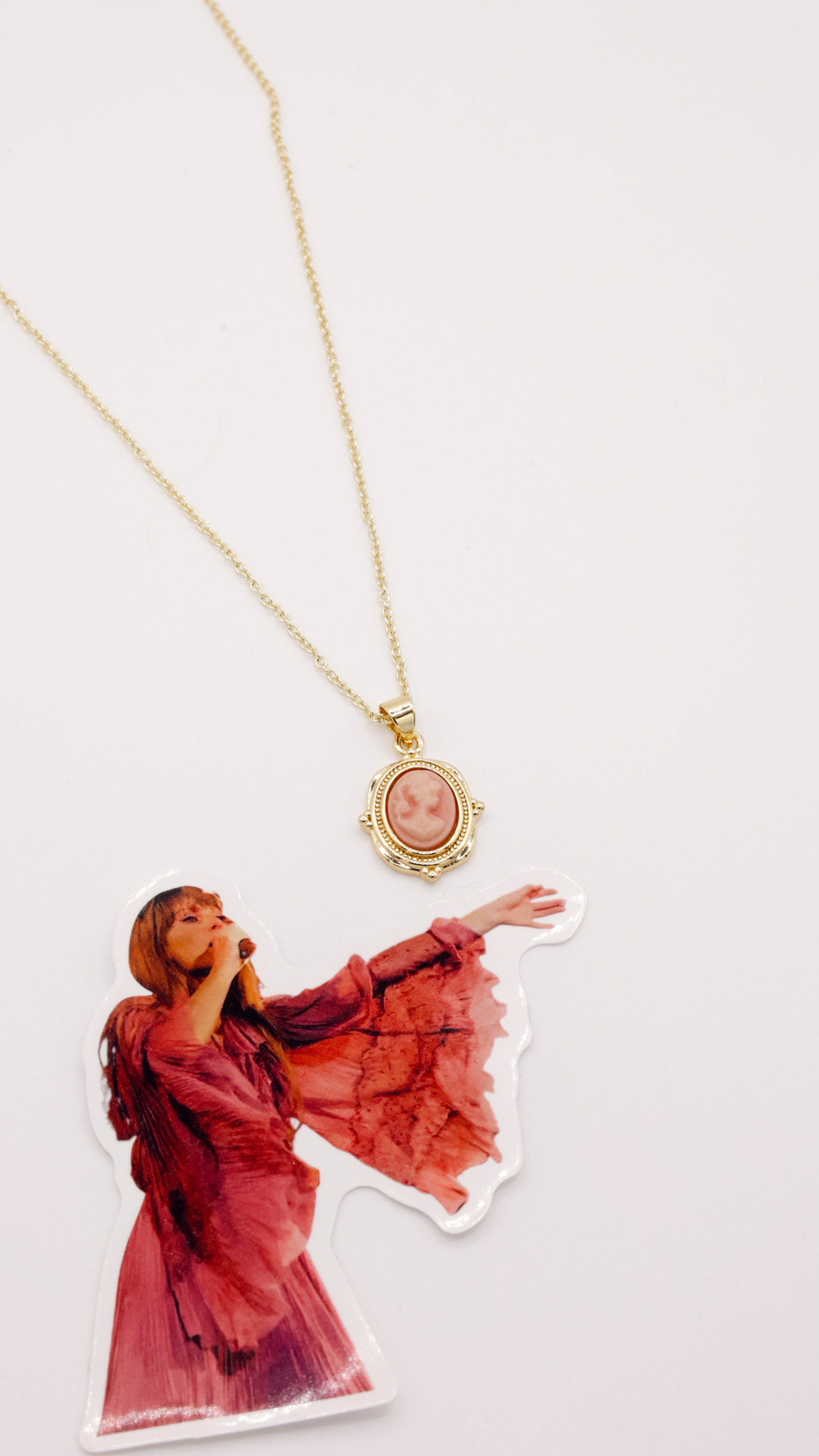 - Features a vintage inspired pink cameo charm